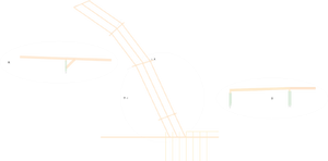 Je me suis fumé la tête sur la jonction terrasse-passerelle ainsi que sur les virages de la passerelle... Et ça y est, aujourd'hui jeudi les deux premiers bastaings de la passerelle, reliés à la terrasse sont en place, sans pente de 3% encore, c'est pour la prochaine section...