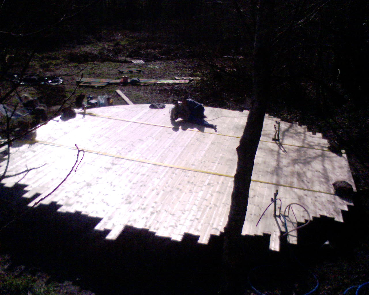 Mise sous tension à la sangle pour rattraper les imperfection d'usinage et de pose.