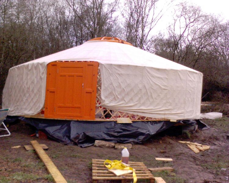 La toile intérieure est montée. On l'a passée par le thoone et déroulé depuis la fenêtre dans le sens des aiguilles d'une montre.