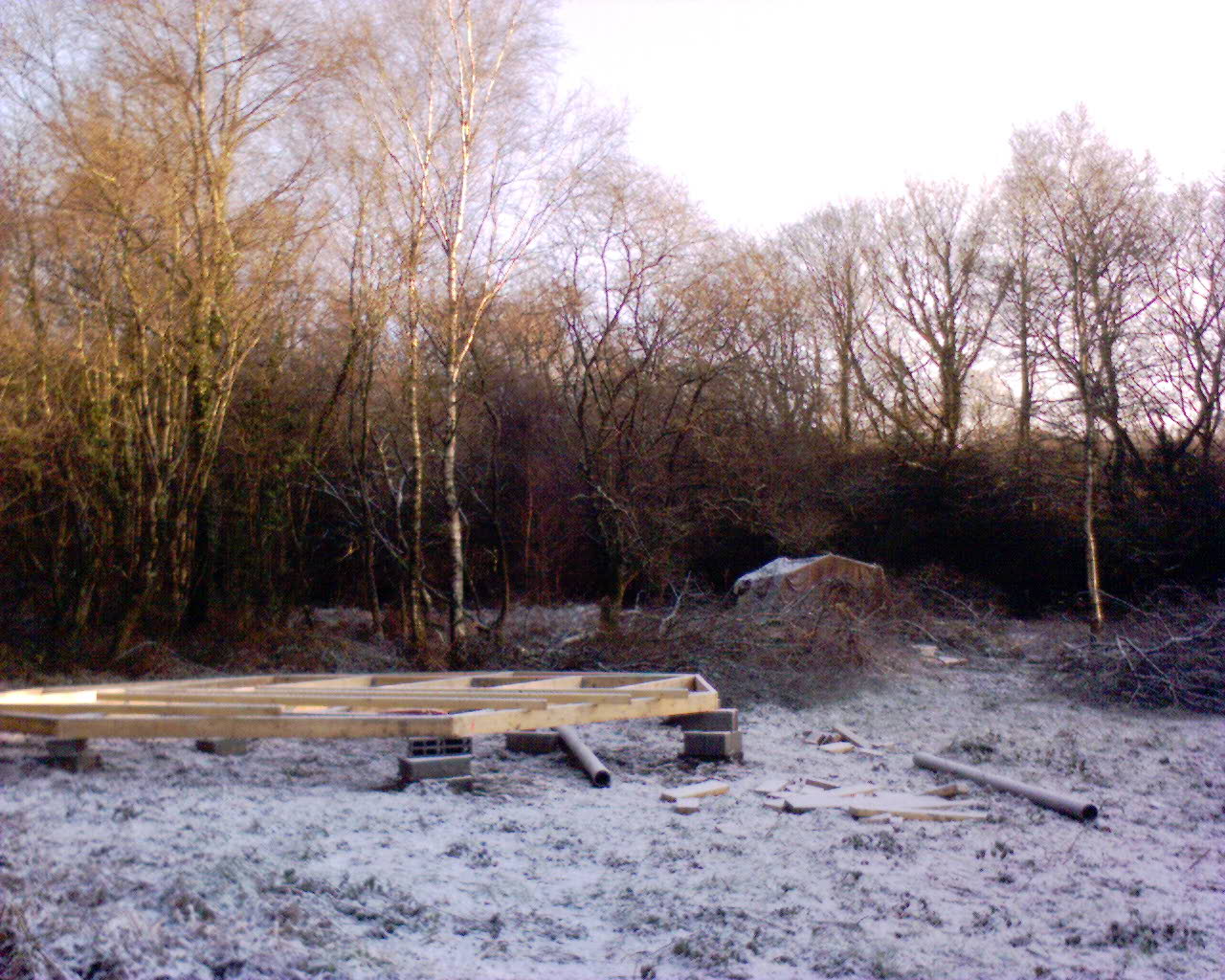 La | La structure du plancher de la yourte, sur plots en parpaings non scellés. | ||